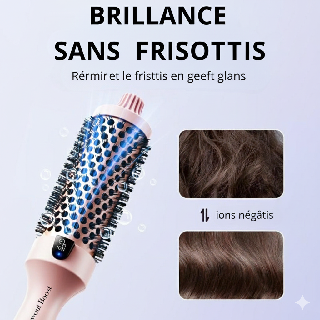 Iontová technologie Blowout Boost neutralizuje statickou elektřinu a pomáhá udržet hydrataci ve vlasech, díky čemuž jsou vlasy viditelně hladší, lesklejší a zdravější. Zatímco běžné stylingové nástroje vlasy vysušují, Blowout Boost je udržuje pružné a zabraňuje vzniku krepatění. Chrání vlasové vlákno, redukuje frizz a dodává vlasům lesk jako ze salonu – a to už během několika minut.