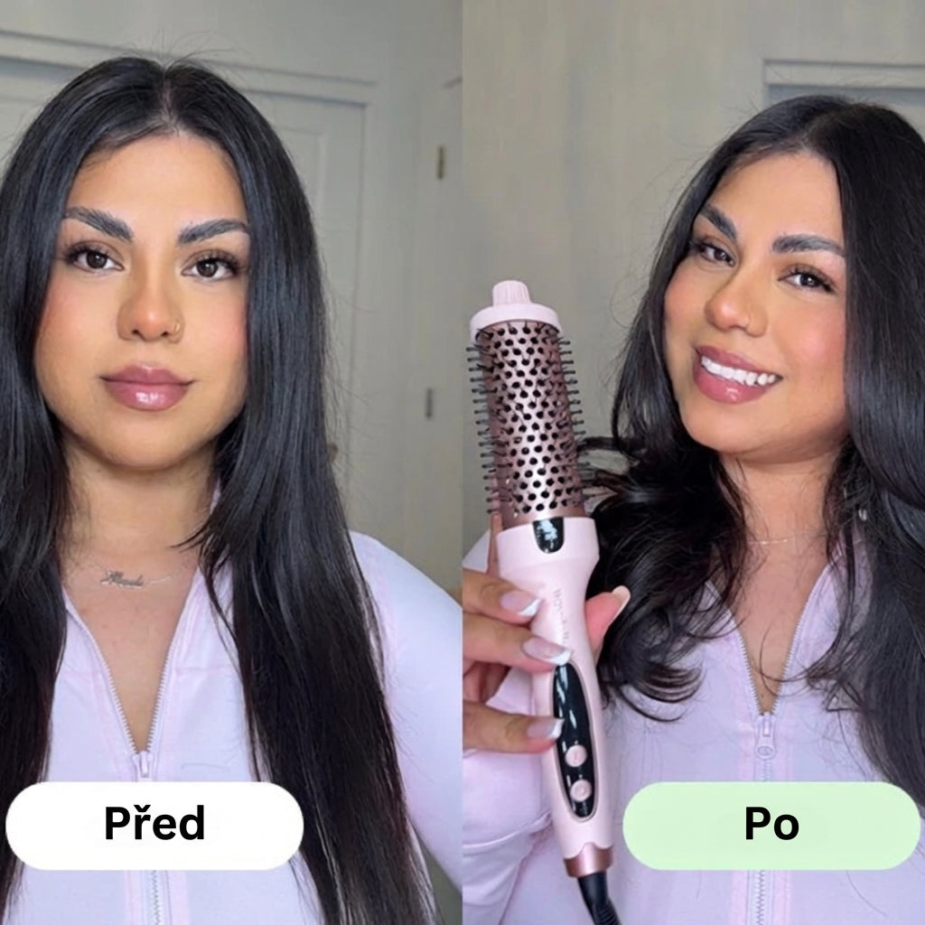 Pro hladký vzhled táhněte kartáč rovně po vlasech – nebo natočte konečky dovnitř pro vytvoření vln. Poté pramen uvolněte pro dokonalý výsledek jako ze salonu.